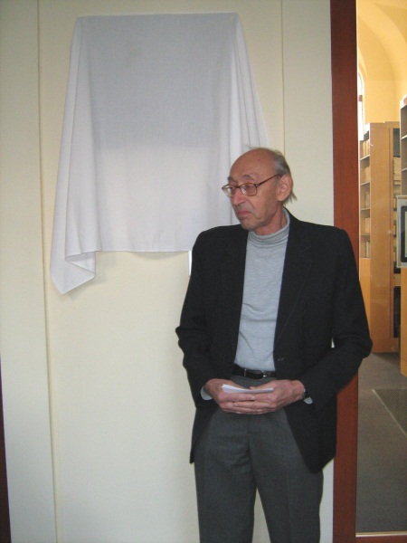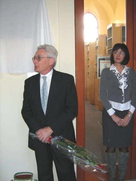 Magócs Éva igazgató és Tüdős Tibor osztálytárs leleplezi az emléktáblát