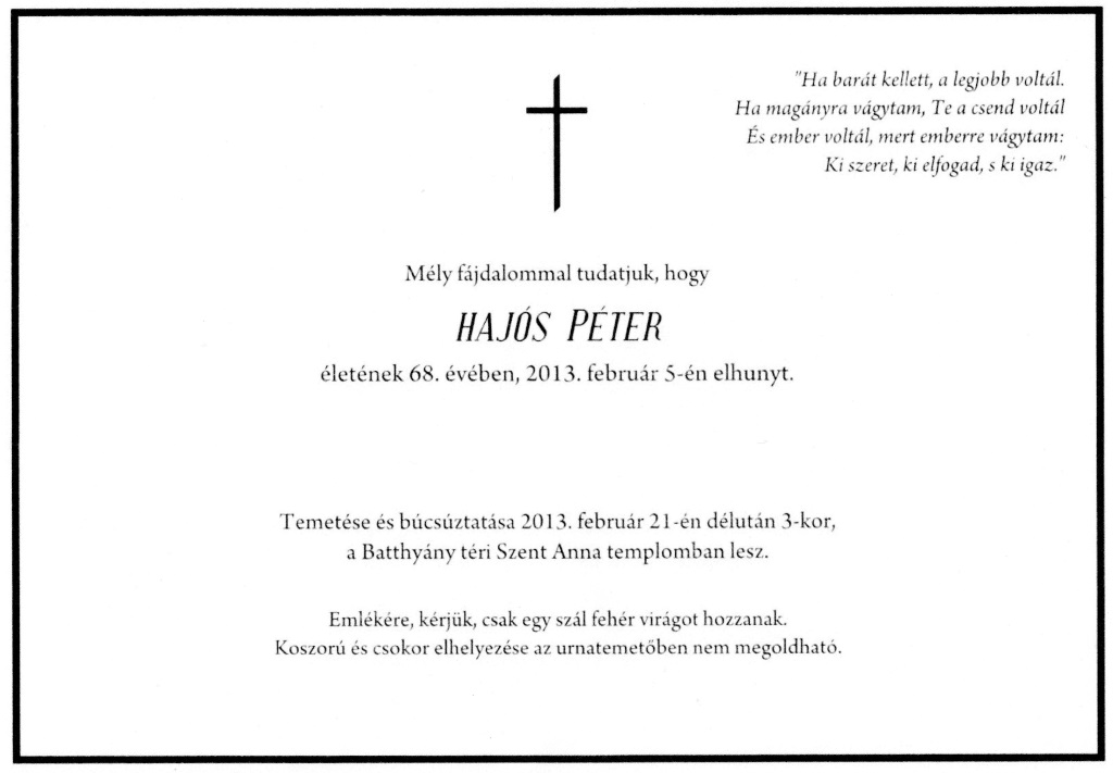 Hajós Péter (é. 1962 IV.d, † 2013.02.05.) |