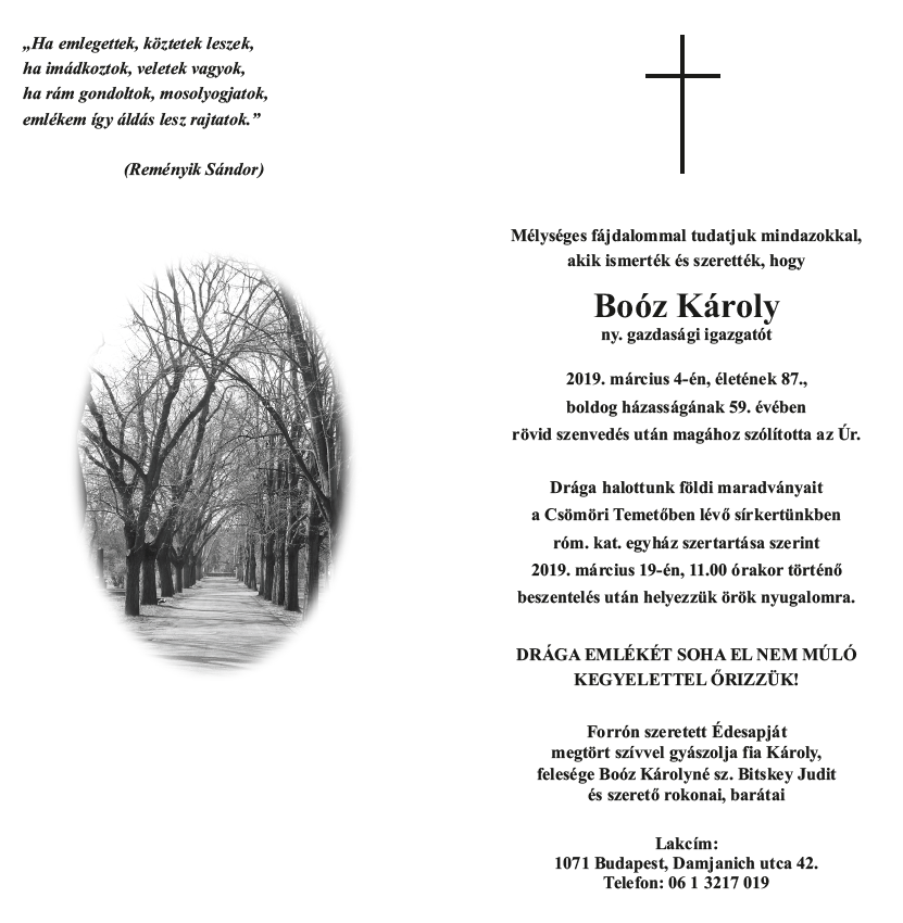 Boóz Károly (é. 1952 IV.c † 2019.03.04.) |