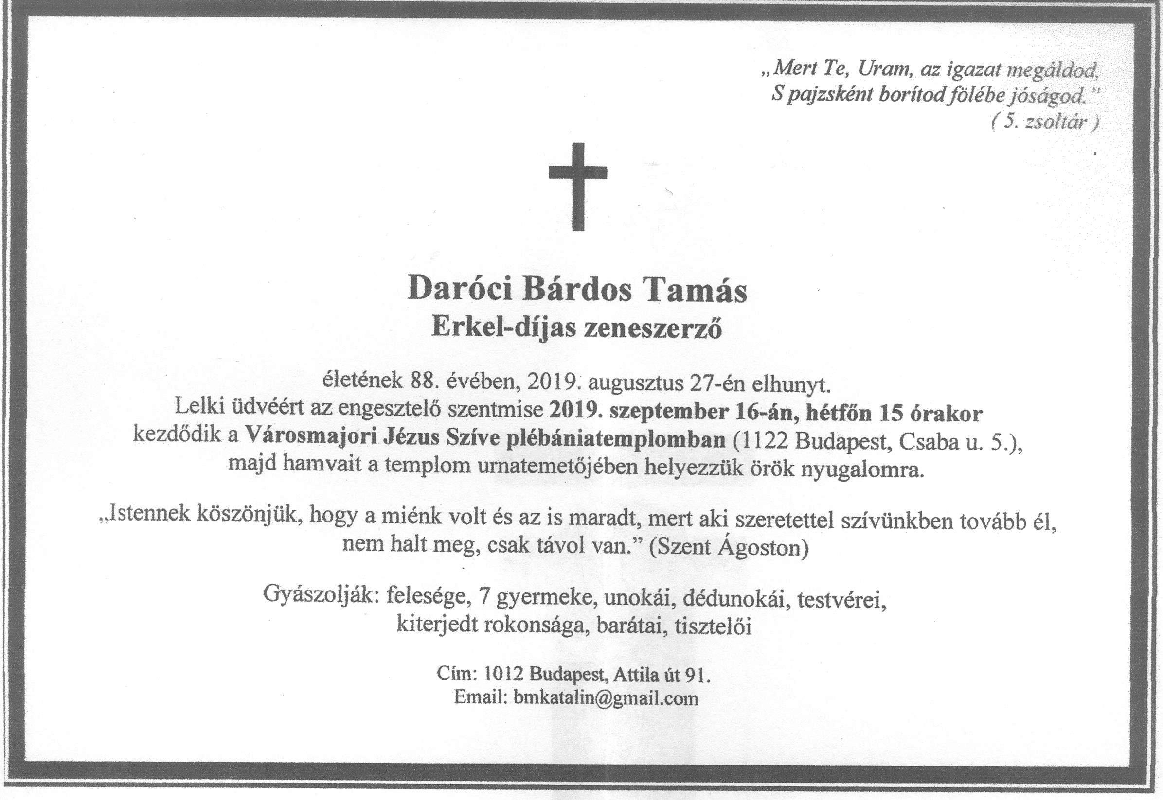 Bárdos Tamás (é. 1950 † 2019.08.27) |