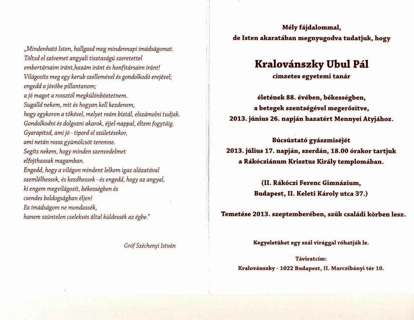Kralovánszky Ubul (é. 1944 Érseki, † 2013.06.26.) |