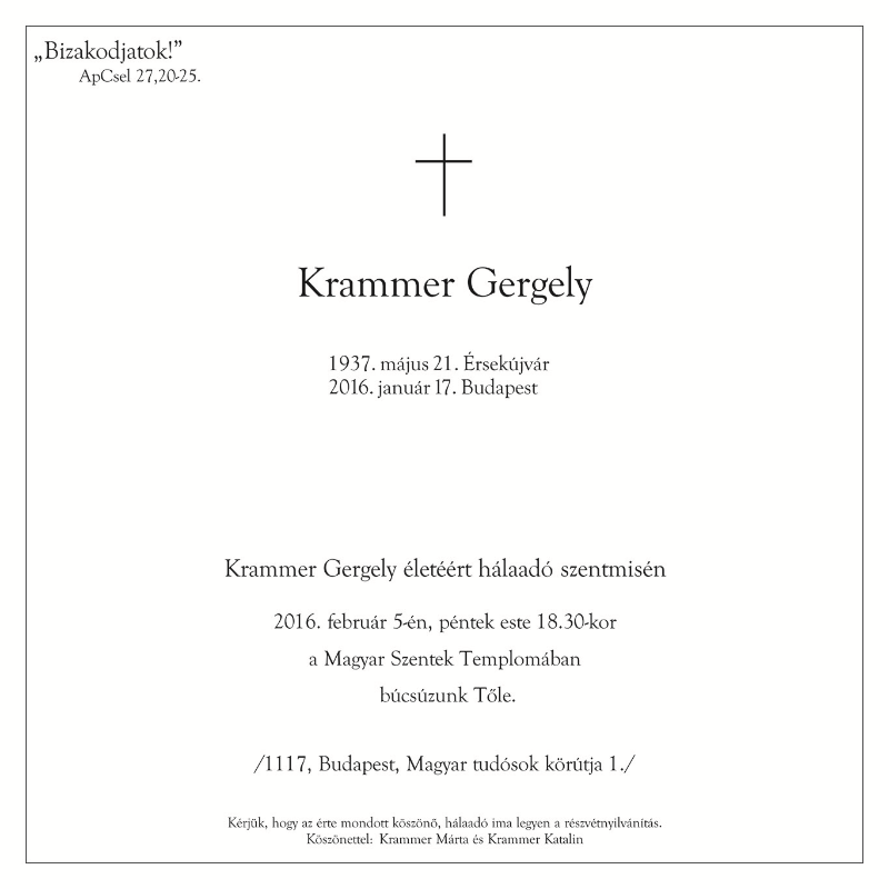 Krammer Gergely (é. 1955 † 2016.01.17.) |
