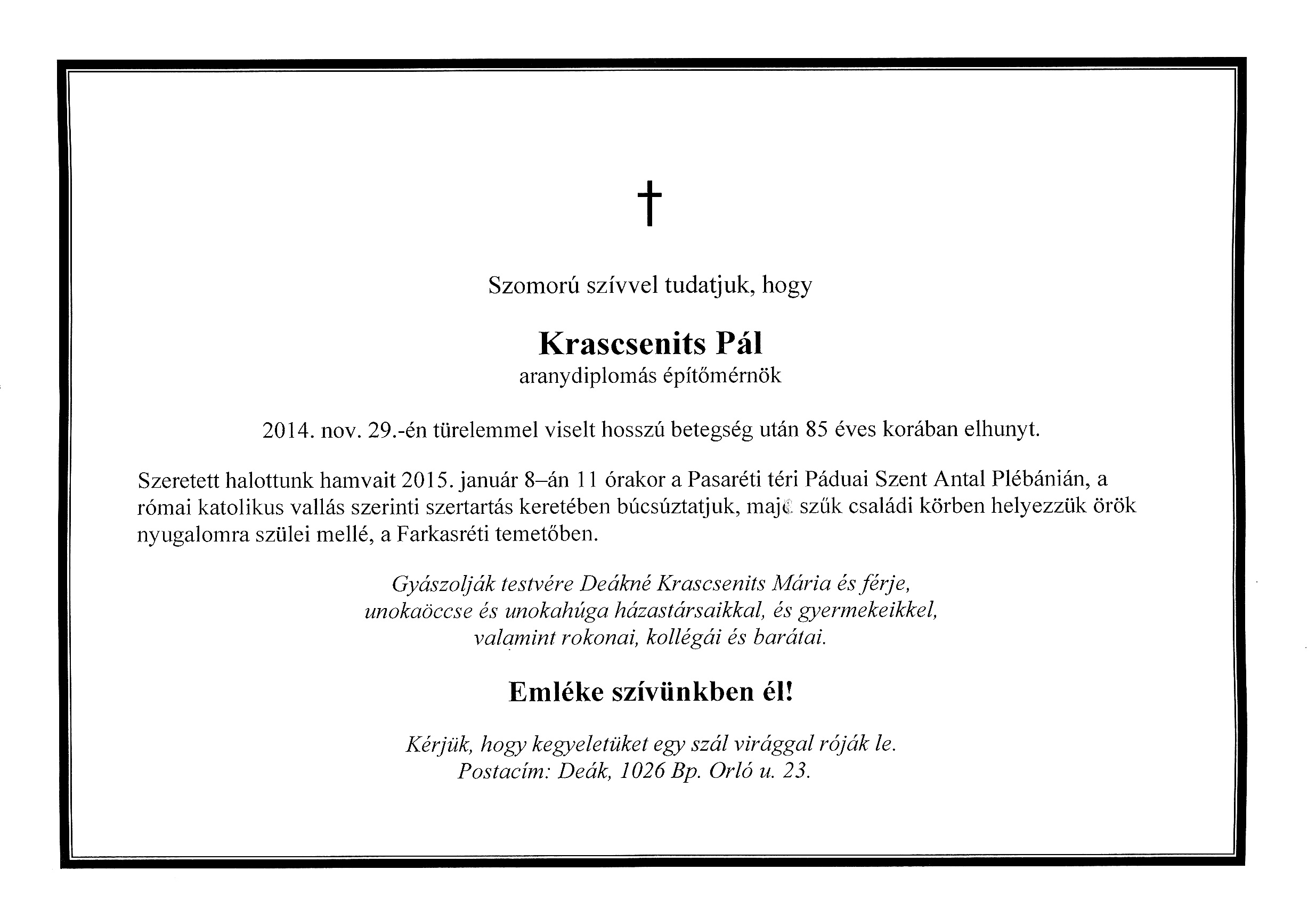 Krascsnits Pál (é. 1947, † 2014.11.29.) |