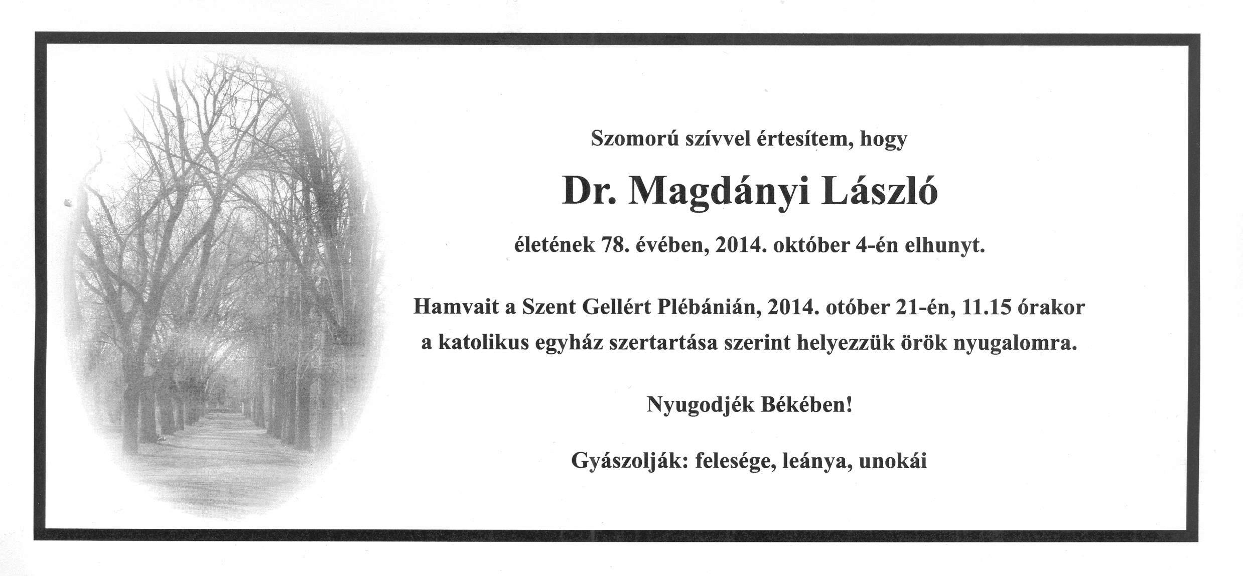 Dr. Magdányi László (é. 1955 IV.c., † 2014.10.04.)) |