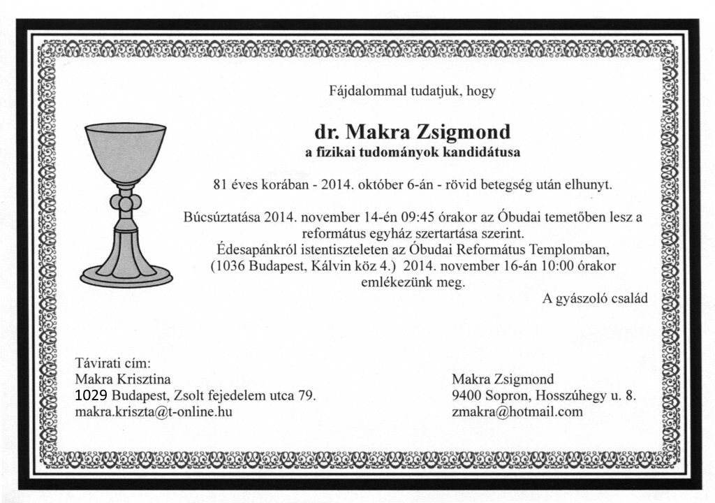 Makra Zsigmond († 2014.10.06.) |
