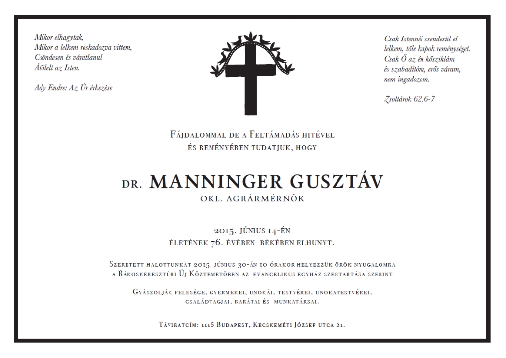 Dr. Manninger Gusztáv (é. 1958 IV.d † 2015.06.14.) |
