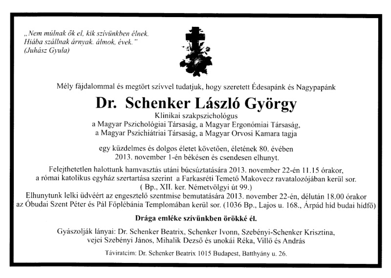 Dr. Schenker László (é. 1952 IV.c, † 2013..11.01.) |