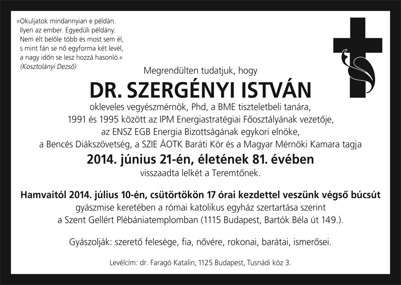Dr. Szergényi István († 2014.06.21.) |