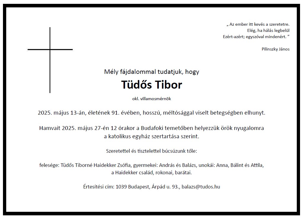 Tüdős Tibor (é. 1952 IV.b † 2025.05.13.) |