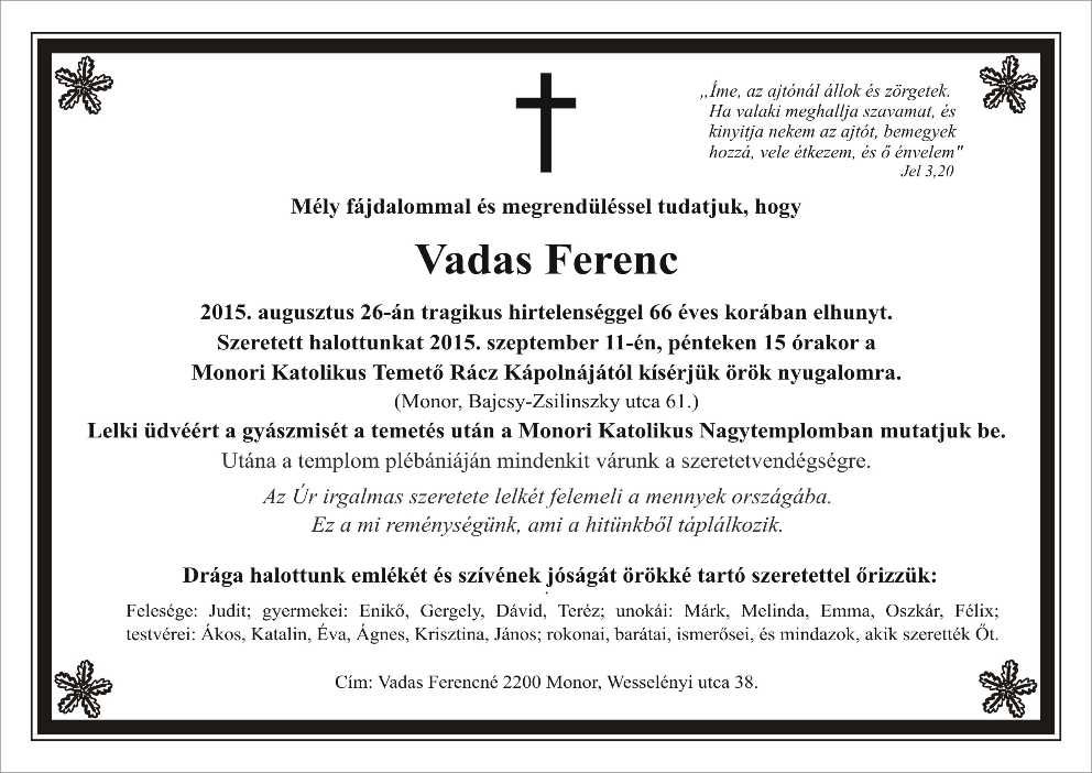 Vadas Ferenc (é. 1967 IV.a † 2015.08.26.) |